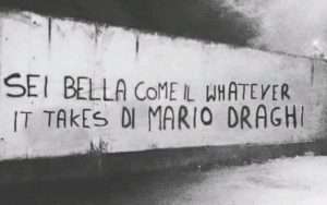 parte sostanziale del debito pubblico italiano al bilancio della BCE, in accordo con Angela Merkel. Il suo discorso del 26 luglio 2012 entrerà negli annali per le tre parole magiche “Whatever It Takes” che hanno fermato la speculazione contro gli Stati membri più deboli della zona euro. Mario Draghi voleva così dire che la sua istituzione avrebbe mantenuto l’integrità di questa zona valutaria oggettivamente viziata, “a qualunque costo”. “Questo è stato il suo colpo di genio: significava “Mi sto liberando dalla Germania”. (…) È qui che ha dato prova di coraggio politico”, dice l’economista Michel Ruimy, professore alla Sciences-po Paris. Per Patrick Artus, capo economista di Natixis, non c’è dubbio che “Super Mario” abbia evitato il crollo della moneta unica”.