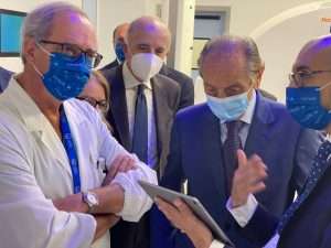 «L’inaugurazione del CEMAD  – ha poi detto Emanuele, parlando nella sala conferenze di Presidenza, gremita dai vertici del policlinico romano – rappresenta una nuova tappa di un articolato percorso di collaborazione con il Policlinico A. Gemelli, che ho fortemente voluto fin dal 2016, allorché ero Presidente della Fondazione Roma, quando ho intuito l’opportunità di dare vita un Centro di riferimento nazionale per il trattamento e la diagnosi delle malattie del sistema digestivo, percorso che oggi giunge ad un momento importante con il completamento della sala ibrida. Grazie ad essa, sottolinea ancora il Presidente Onorario, il CEMAD ha le carte in regola per erogare prestazioni diagnostiche e di cura innovative e ad alta complessità, e per consolidare quella reputazione ormai di livello assoluto e internazionale, decretata dal riconoscimento del 3° posto nel mondo per l’anno in corso 2021 come centro di eccellenza per le malattie dell’apparato digerente attribuito dalla rivista americana “Newsweek”, soprattutto in virtù del convinto e ripetuto sostegno offerto dalla Fondazione Roma. Oggi, dunque, sono particolarmente soddisfatto, perché ciò che avevo ipotizzato già diversi anni fa, prende felicemente corpo, ed anche perché la partnership con il Policlinico A. Gemelli, anch’essa da me avviata tanto tempo fa, non cessa di produrre frutti straordinari e continuerà a produrne nel futuro anche di più strabilianti».