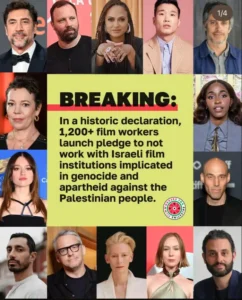 La voce del cinema internazionale si unisce al coro delle proteste contro l’offensiva israeliana su Gaza. Sotto la sigla Film Workers for Palestine, oltre 1300 tra registi, attori, sceneggiatori e altri lavoratori del settore hanno firmato un appello pubblico che segna uno dei più rilevanti atti di boicottaggio culturale dall’inizio del conflitto. Tra i firmatari figurano nomi illustri come Yorgos Lanthimos, Ava DuVernay, Tilda Swinton, Olivia Colman, Mark Ruffalo, Javier Bardem e Riz Ahmed. La richiesta è netta: interrompere ogni forma di collaborazione con festival, enti e produzioni considerate “complici” delle politiche israeliane contro i palestinesi.