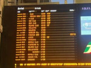 Alle 19:30, i tabelloni della stazione segnalavano:Frecciarossa da Reggio Calabria con 520 minuti di ritardo (oltre 8 ore e mezza) Frecciarossa AV 8418 per Venezia con 480 minuti di ritardo AV 8134 Torino Porta Nuova con 360 minuti AV 9642 Torino Porta Nuova con 270 minuti Anche i treni in arrivo da sud mostravano ritardi notevoli: AV 8418 da Reggio Calabria con 520 minuti, AV 9584 e AV 8134 rispettivamente con 370 minuti. Secondo Trenitalia, la linea coinvolta è quella che collega Roma a Torino passando per la Calabria.