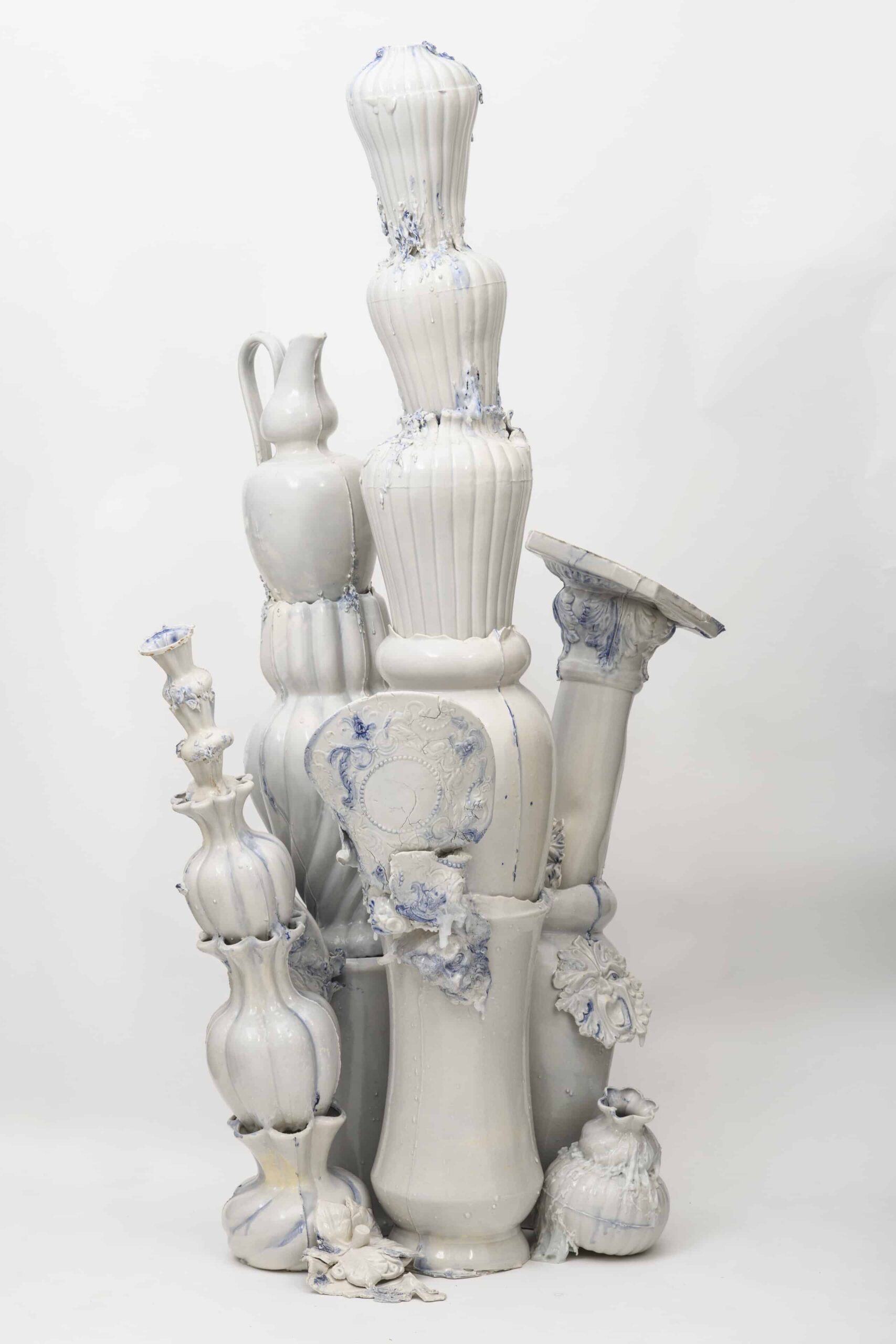 Il primo premio di questa edizione è stato assegnato a Guglielmo Maggini, presente in mostra con Titano mio, una scultura che unisce con rigore e sensibilità il sapere artigianale della ceramica alla ricerca plastica contemporanea. Realizzata durante la residenza al laboratorio Fumanti di Gubbio, l’opera si configura come un organismo complesso, un conglomerato di ceramica e resina che evoca al tempo stesso un albero, un totem e una costellazione di frammenti vitali. La giuria ha riconosciuto nel lavoro di Maggini la capacità di attivare un dialogo profondo con il genius loci, dimostrando come un materiale antico possa essere reinterpretato in chiave attuale senza perdere la propria forza espressiva.