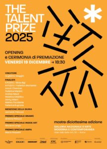 L’appuntamento con l’inaugurazione è fissato per giovedì 19 dicembre alle ore 18.30, nella Sala delle Colonne della Galleria Nazionale d’Arte Moderna e Contemporanea di Roma. La mostra resterà aperta al pubblico fino al 18 gennaio 2026, confermando il Talent Prize come uno dei momenti più significativi di incontro tra istituzioni, critica e nuove traiettorie dell’arte contemporanea.